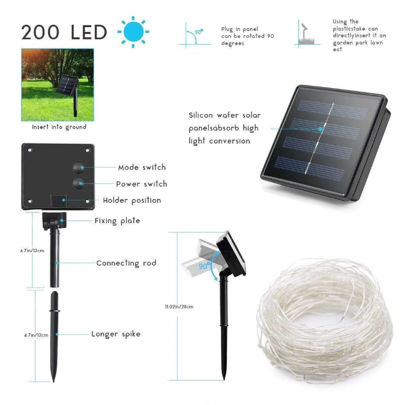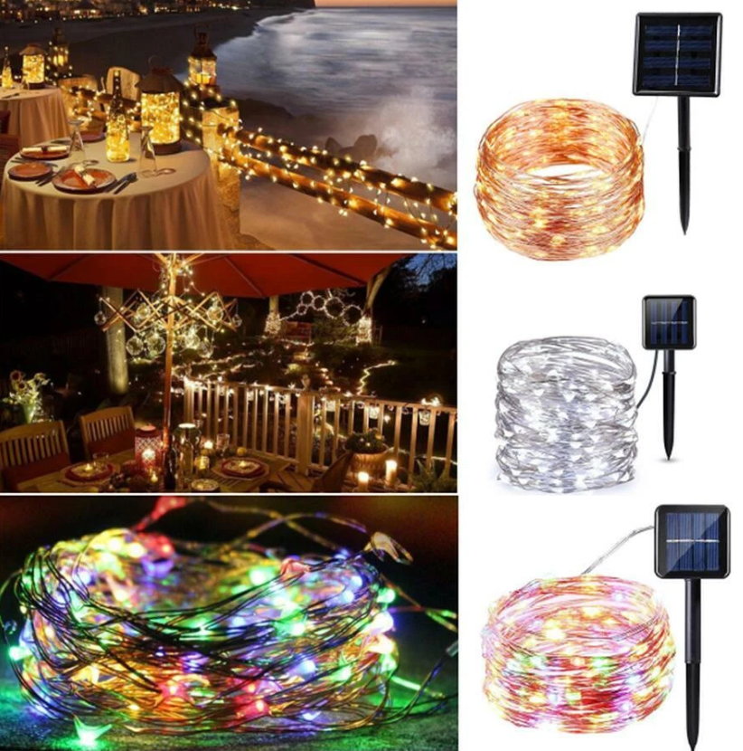Transform your outdoor space with Solar LED String Lights. Waterproof, flexible, and solar-powered, these copper wire lights are perfect for gardens, patios, parties, and Christmas décor. Easy to hang and eco-friendly — bring instant charm and glow to your celebrations!