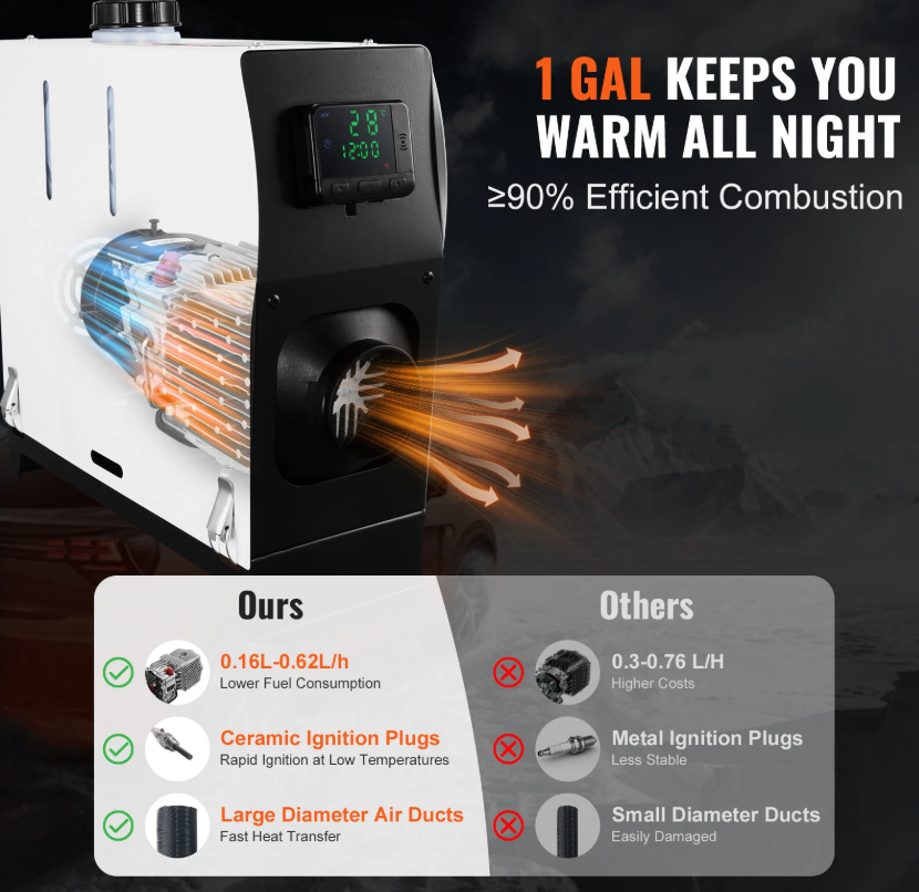 Enjoy warmth and comfort anywhere with the VEVOR Diesel Air Heater, the perfect solution for travelers, campers, and homeowners needing reliable heating in cold environments.